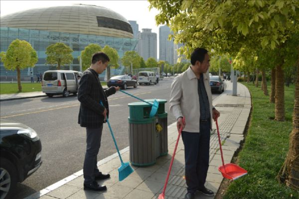 顧不上欣賞春光明媚、水靜人和的美景,碧波蕩漾的如意湖畔出現(xiàn)了建投志愿者服務隊的身影,大家拿起掃帚、垃圾袋等工具一路前行,看見沿岸偶爾零散的垃圾或不易發(fā)現(xiàn)的紙屑便主動上前進行清理,很快,如意湖周邊的石柱、圍欄、長椅就煥然一新,廣場周邊散落的紙屑、煙頭也被清掃干凈。