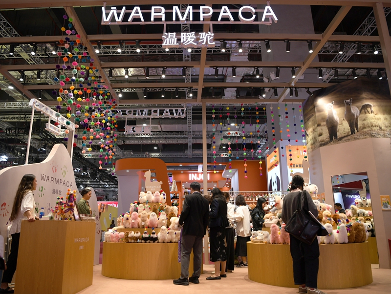 這是11月5日在上海拍攝的第七屆進(jìn)博會(huì)秘魯“溫暖駝”展臺。今年,秘魯品牌“溫暖駝”連續(xù)第七年亮相進(jìn)博會(huì),受到更多中國消費(fèi)者的喜愛。新華社記者 金馬夢妮 攝