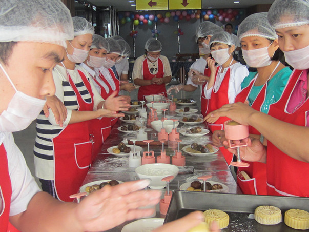 走進世博大廈服務中心,鮮花隨處可見,華美的裝修設計使人心曠神怡,現(xiàn)場充滿了濃郁的節(jié)日氛圍。大家熱情高漲、十分投入,和面、搟皮,包餡,然后刷上蛋液,撒上芝麻,最后烘烤出爐。員工們邊動手制作月餅邊盡情享用自己的“完美作品”,并拍照留念,記錄下了許多歡樂的瞬間。而現(xiàn)場專業(yè)的月餅師傅則耐心地傳授制作月餅的要領,聽得大伙頻頻點頭。另外,除了可以親手制作月餅,還可現(xiàn)場烘焙,讓員工們可現(xiàn)場品嘗至自己制作的月餅,活動現(xiàn)場處處洋溢著溫馨和美的氣氛……