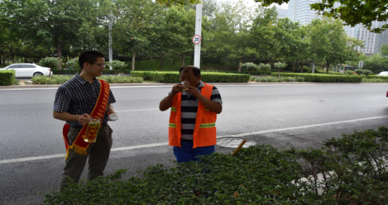一、高溫送清涼,義務(wù)送水活動(dòng)。近日,持續(xù)的高溫席卷鄭州。即使是這樣的高溫天氣,環(huán)衛(wèi)工人仍頭頂烈日,堅(jiān)守在高溫一線(xiàn),確保轄區(qū)內(nèi)整潔有序、干凈衛(wèi)生。7月14日上午,市建投公司黨員志愿者自備祛暑茶水,帶著水壺、水杯,慰問(wèn)了酷暑中仍然堅(jiān)守在一線(xiàn)的鄭東新區(qū)環(huán)衛(wèi)工人,為他們送上了夏季“解渴水”,感謝高溫下堅(jiān)守崗位的他們?yōu)榄h(huán)衛(wèi)工作所付出的辛苦和汗水,并叮囑大家一定要加強(qiáng)防暑措施,注意安全。此次活動(dòng),不僅在這個(gè)夏天為一線(xiàn)環(huán)衛(wèi)人員送來(lái)了清涼,更彰顯了來(lái)自企業(yè)的愛(ài)心和責(zé)任。
