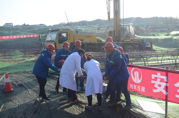 本次安全應(yīng)急演練活動(dòng)由河南五建建設(shè)集團(tuán)有限公司、河南新恒豐工程咨詢有限公司承辦。市政工程建設(shè)管理中心項(xiàng)目一部、二部全體員工,集團(tuán)公司安全管理部代表以及各施工、監(jiān)理代表近百人參加了此次活動(dòng)。