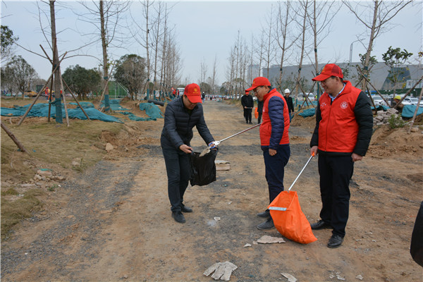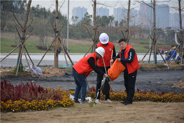 上午十時三十分,志愿服務活動開始后,集團公司黨委委員、副總經(jīng)理、項目部總經(jīng)理汪洋親自帶頭參加活動,其他黨員干部帶頭干,職工群眾積極干,參建單位負責人志愿加入干,大家拿起工具、彎下腰去,撿起草地上的生活垃圾,集中放進現(xiàn)場放置的垃圾桶內(nèi);沒有拿到工具的同志們也拿起簡易垃圾袋,將撿到的生活垃圾放進垃圾袋盛滿后再放進垃圾桶內(nèi)。一時間,黨徽熠熠、愛心閃閃、干勁滿滿,不到一個小時時間,約20人的志愿服務隊伍完成了近20000平米區(qū)域的垃圾清理任務,景觀施工現(xiàn)場面貌大為改觀。