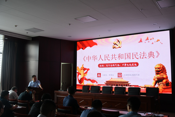 法治宣講報(bào)告會(huì)》,本次民法典宣講由河南辰中律師事務(wù)所申律師主講。集團(tuán)公司70多名員工參加了本次培訓(xùn)。????? 《民法典》是新中國(guó)成立以來(lái)第一部以“法典”命名的法律,是新時(shí)代我國(guó)社會(huì)主義法治建設(shè)的重大成果,開(kāi)創(chuàng)了我國(guó)法典編撰立法的先河,具有里程碑意義。?????? 報(bào)告會(huì)上,申律師從《民法典》的編撰歷程、重要意義、民法典的總體構(gòu)成、主要內(nèi)容和具體規(guī)定上的亮點(diǎn)等方面入手,對(duì)民法典的七個(gè)章節(jié)進(jìn)行了深入淺出的講解和梳理。使參會(huì)人員對(duì)《民法典》有了深入的了解和認(rèn)識(shí);為更好的達(dá)到培訓(xùn)效果,法務(wù)審計(jì)部還給集團(tuán)公司每個(gè)部門(mén)發(fā)放了《民法典》書(shū)籍,使大家能夠?qū)⒙蓭煹闹v解和書(shū)本的知識(shí)能夠有效的結(jié)合。隨后集團(tuán)公司法務(wù)審計(jì)部選取《民法典》有關(guān)內(nèi)容舉行了一場(chǎng)知識(shí)競(jìng)賽,參會(huì)人員積極參與競(jìng)賽試題作答,取得了良好的培訓(xùn)效果。?????? 通過(guò)本次培訓(xùn)和知識(shí)競(jìng)賽活動(dòng),集團(tuán)公司員工對(duì)《民法典》有了更加深刻的理解,進(jìn)一步增強(qiáng)了大家的知法守法意識(shí),營(yíng)造了遵法、學(xué)法、用法的濃厚氛圍,切實(shí)提高了集團(tuán)公司員工法律專(zhuān)業(yè)化知識(shí)和依法治企水平。">